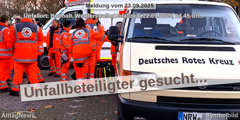 Unfallort: Bocholt, Werderstraße;Unfallzeit: 22.09.2025, 13.45 Uhr;Den Halter eines beschädigten Fahrzeugs sucht die Polizei nach einem Verkehrsunfall in Bocholt. Am Montag hatte ein Auto auf der Werderstraße einen parkenden Wagen gestreift und dabei den Außenspiegel angefahren. Bei dem angefahrenen Wagen soll es sich um einen grau lackierten VW Golf Kombi gehandelt haben.Die Polizei bittet den Geschädigten, Kontakt zum Verkehrskommissariat in Bocholt aufzunehmen: Tel. (02871) 2990. (to)