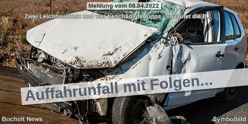 Zwei Leichtverletzte und vier beschädigte Autos - so lautet die Bilanz eines Auffahrunfalls, zu dem es am Donnerstag gegen 17.40 Uhr in Bocholt gekommen ist. Eine 34-Jährige hatte die Dinxperloer Straße stadtauswärts befahren und zu spät bemerkt, dass kurz hinter der Kreuzung Herzogstraße mehrere Fahrzeuge vor ihr verkehrsbedingt hielten. Die Wucht des Aufpralls schob das hinterste Fahrzeug gegen ein weiteres, das wiederum dadurch gegen den vordersten Wagen stieß. Dabei erlitt eine 21 Jahre alte Fahrerin aus den Niederlanden leichte Verletzungen, ebenso eine 38 Jahre alte Fahrerin aus Bocholt. Sie kamen zur ambulanten Behandlung in ein Krankenhaus. |