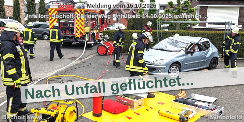 Unfallort: Bocholt: Barloer Weg;Unfallzeit: 14.10.2025, zwischen 09.35 Uhr und 10.00 Uhr;Einen grauen Nissan Townstar beschädigt hat ein bislang unbekannter Autofahrer am Dienstagmorgen in Bocholt. Der Wagen stand auf dem Besucherparkplatz des Krankenhauses am Barloer Weg. Der Flüchtige beschädigte das Fahrzeug an der linken Seite und entfernte sich, ohne seinen gesetzlichen Pflichten nachzukommen. Hinweise erbittet das Verkehrskommissariat in Bocholt: Tel. (02871) 2990. (jh)