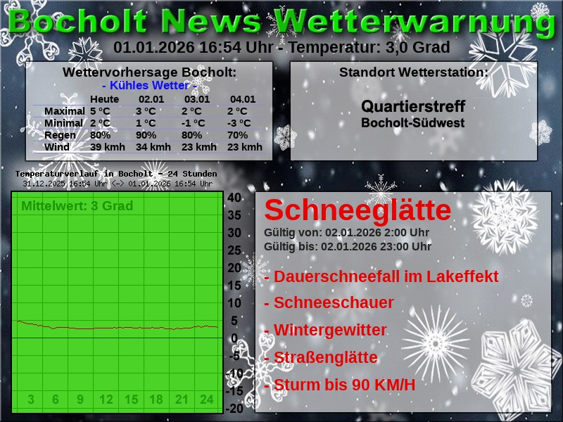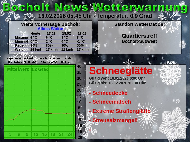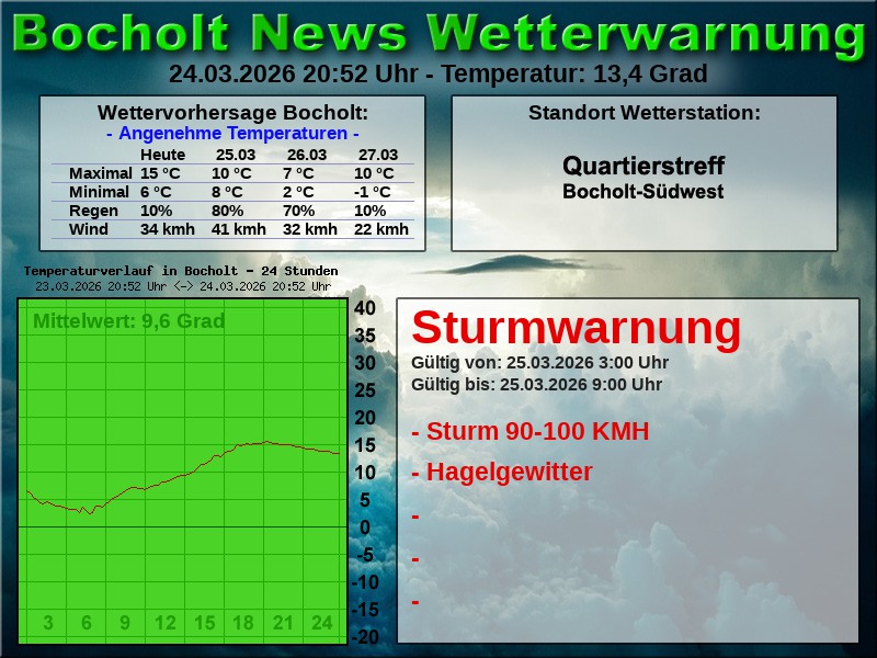 Es besteht die Möglichkeit, dass das gemeldete Wetterereignis eintritt. Deshalb wird eine Warnung heraus gegeben. Es kann auch sein, dass das Wetterereignis schwächer, stärker oder nicht eintritt. Speziell bei Gewitterwetterlagen sind die Unwetterereignisse örtlich eng begrenzt. Bei Gewittern z.B. kann es vorkommen, dass in Rhede die Straßen überschwemmt sind, während in Bocholt die Sonne scheint.